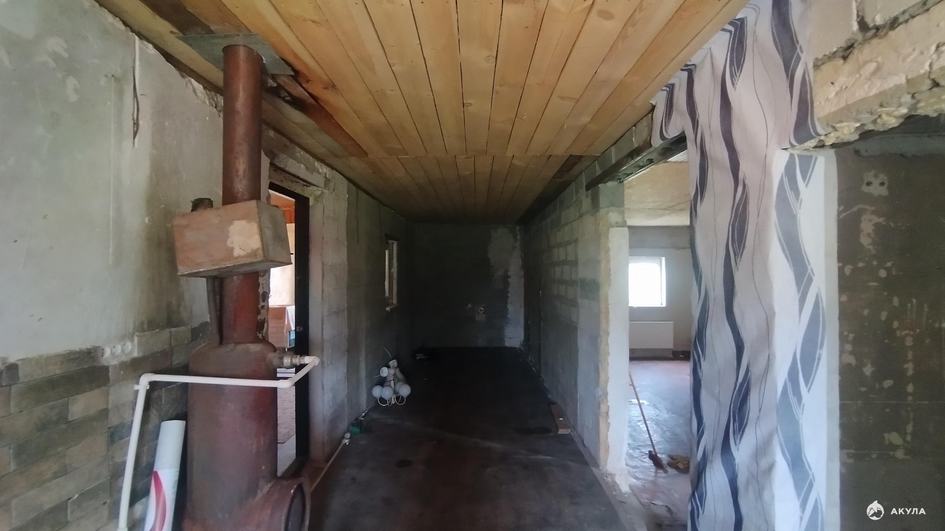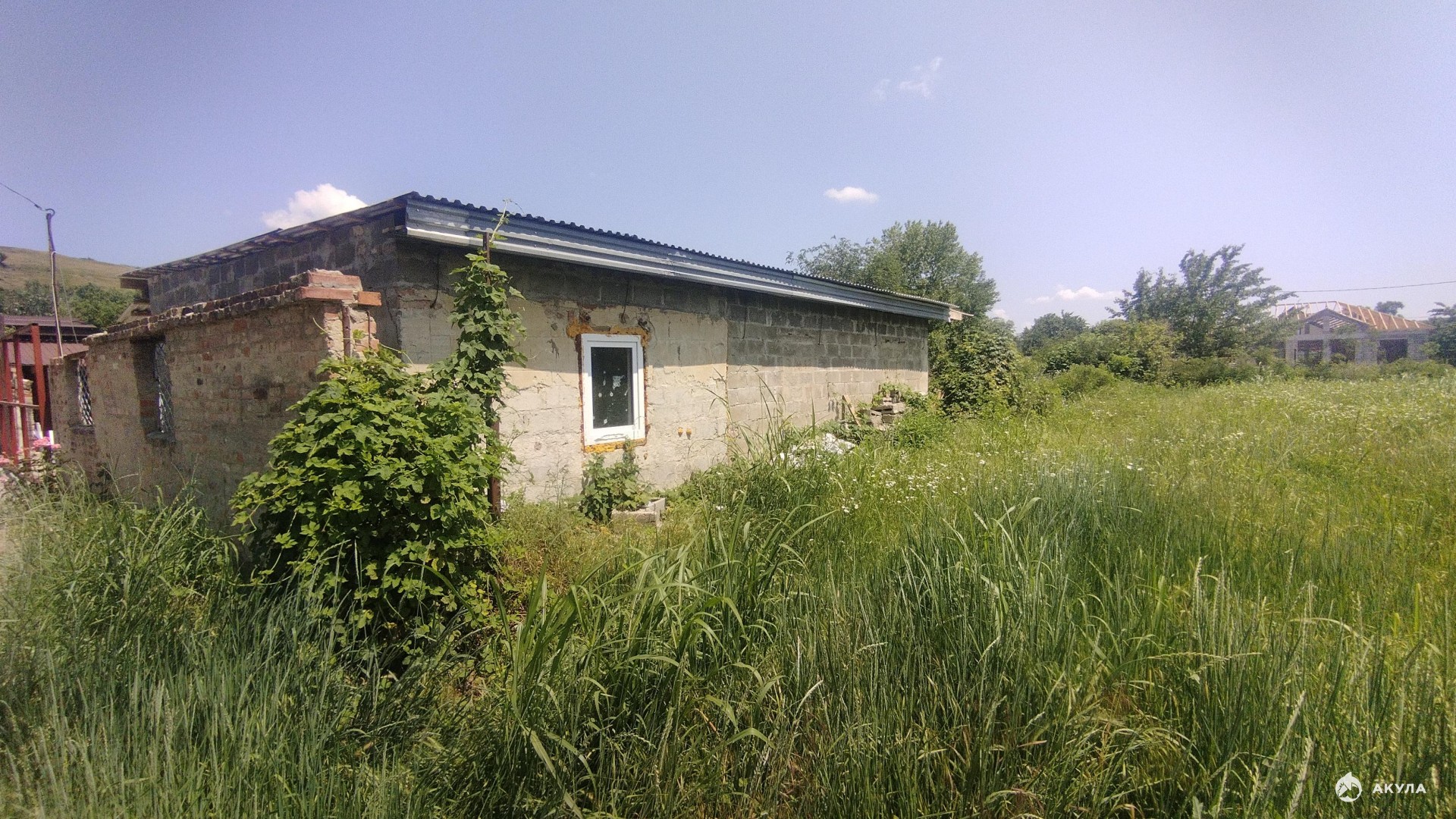 Свет, вода, по газу квота оплачена. Материал стен газобетонный блок. Большая кухня-столовая, ванная комната.