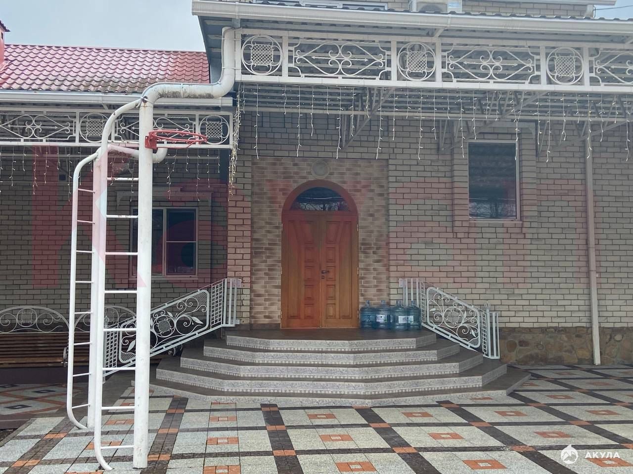 В доме есть три выхода: центральный, выход из цокольного этажа, выход из помещения первого этажа.