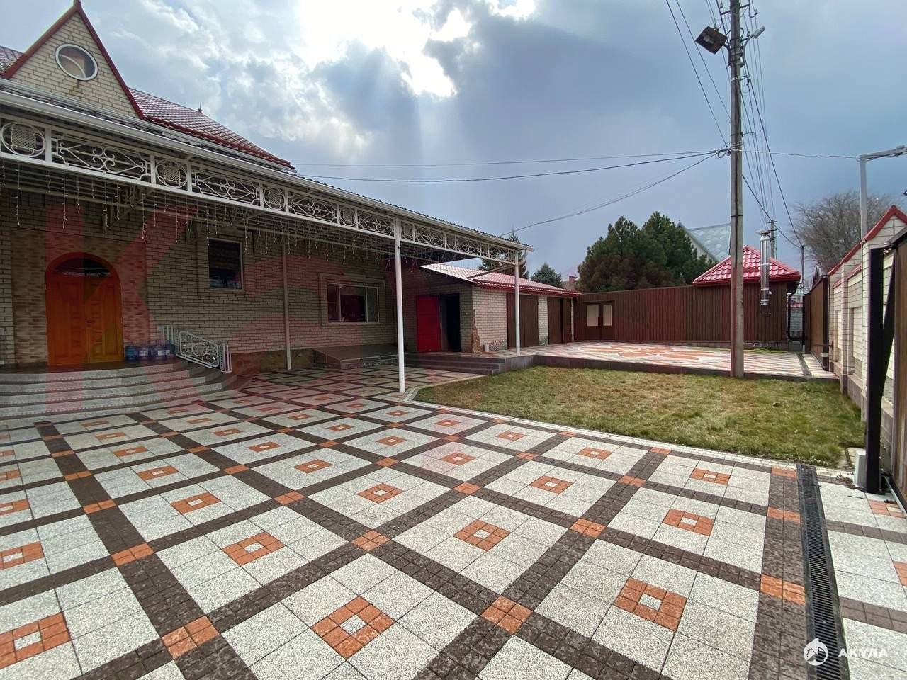 К дому пристроен навес площадью 100 кв.м., высота навеса 6 метров. Вход в который возможен с улицы со стороны дома, также можно выйти из дома из кухни. Под навесом находится большой камин. Помещение можно использовать, проводить торжественные мероприятия, а также для хранения больших габаритных вещей, использовать для производства.